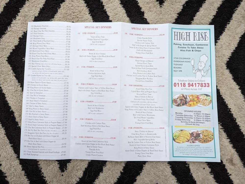 Nestled in The Colonnade at 2 Overdown Rd, Tilehurst, Reading RG31 6PR, High Rise is a gem for locals and visitors alike. Its strategic location means that it’s just a few minutes’ drive from the bustling heart of Reading while remaining accessible to the surrounding neighborhoods. The laid-back ambiance welcomes guests throughout the week, with opening hours extending daily to accommodate lunch and dinner plans. The establishment features a wheelchair-accessible car park along with seating, ensuring that everyone can enjoy their meal comfortably. The inviting décor and casual vibe make it an ideal spot for everything from casual get-togethers to family dinners. Those stopping by can also benefit from free street parking, making it convenient to grab a meal without the stress of finding a parking space.